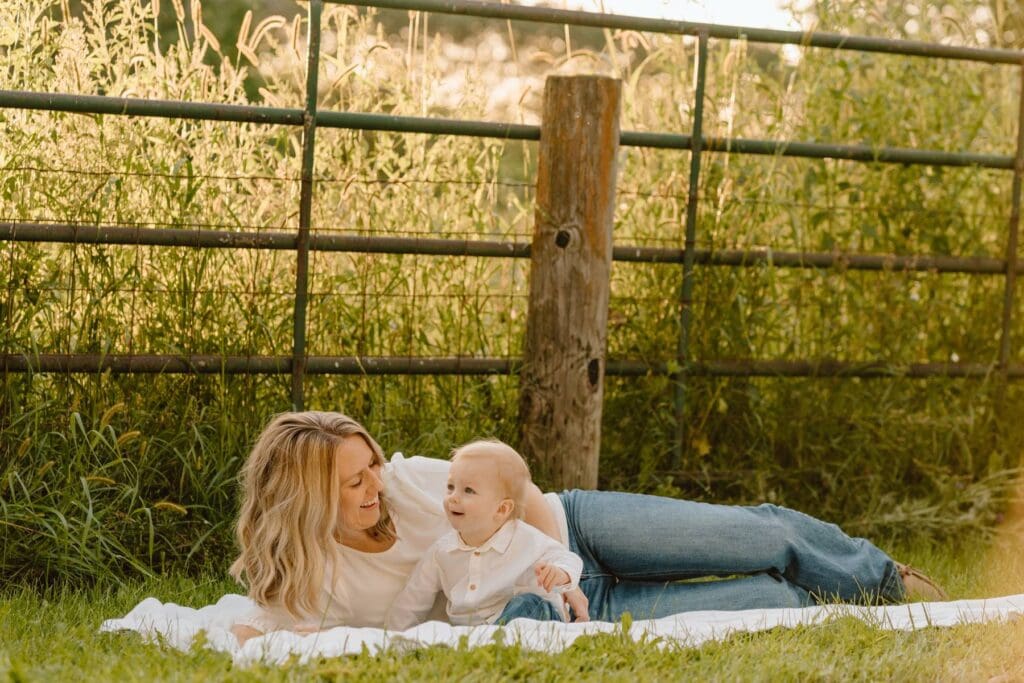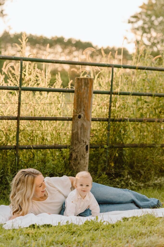 For this shoot, the family kept their outfits simple and timeless, which worked so well against the natural farm setting. I always recommend choosing pieces you feel comfortable moving in — because with kids, we go from posed portraits to tickle fights pretty fast. Those in-between moments usually end up being everyone’s favorites anyway.